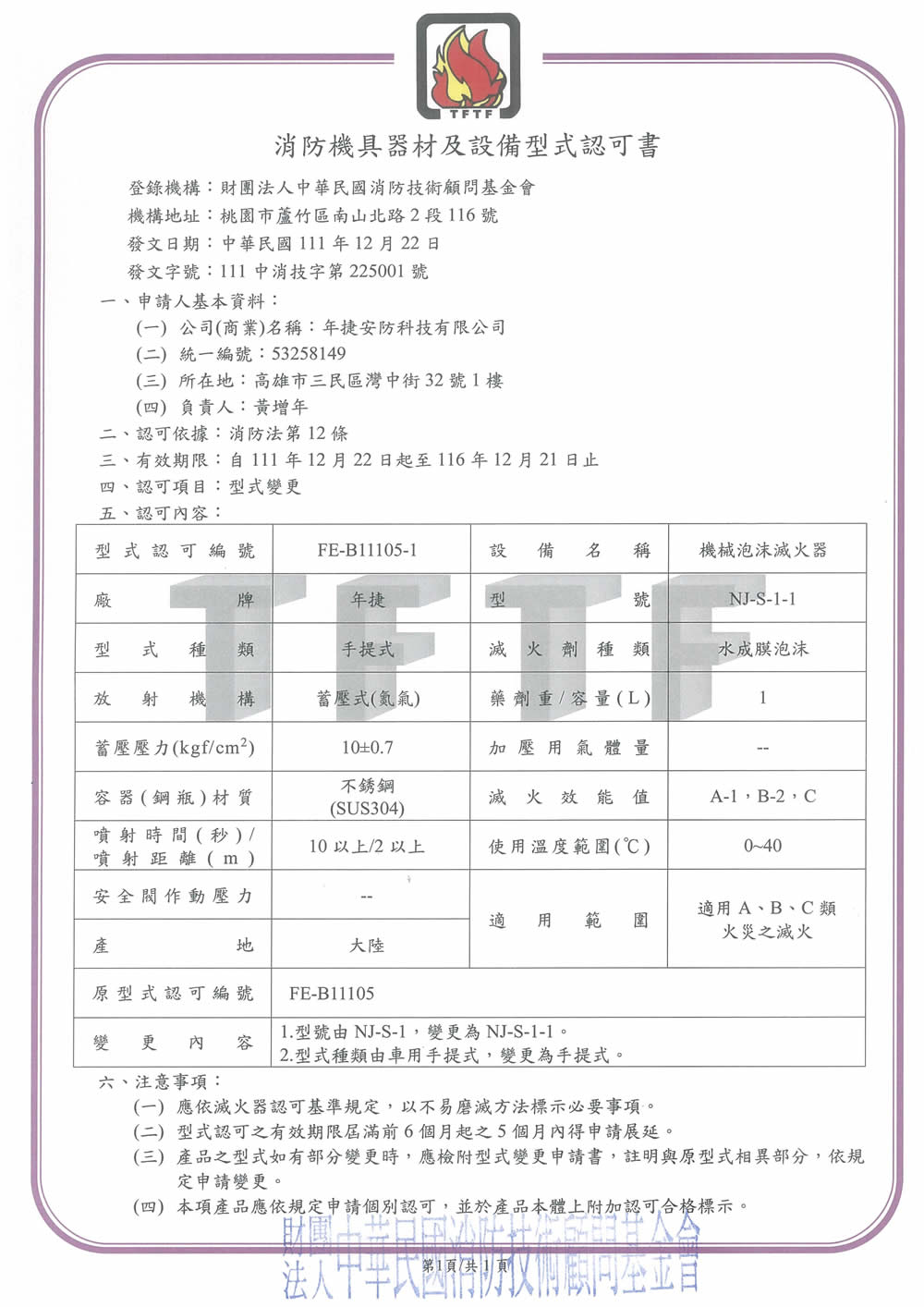 年捷 NJ-S-1(證書)