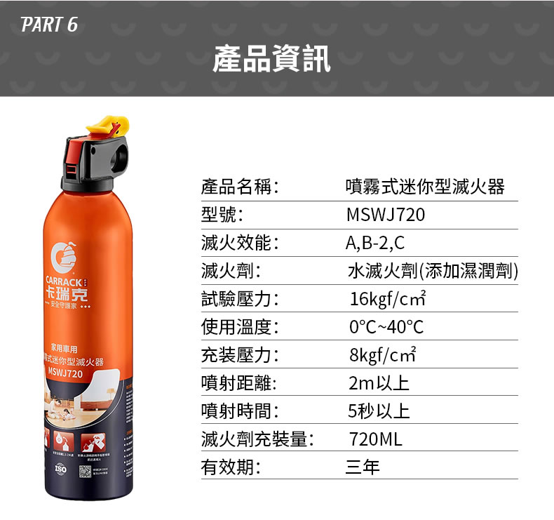 [卡瑞克 CARRACK] 噴霧式迷你型滅火器MSWJ720