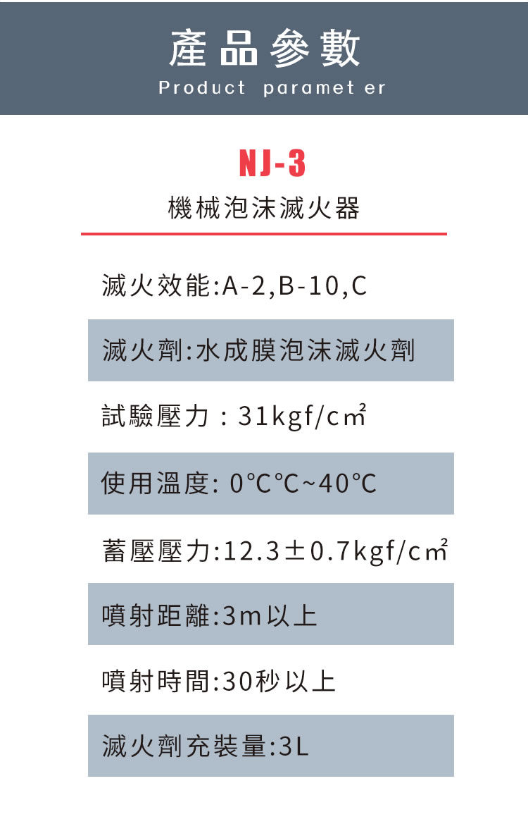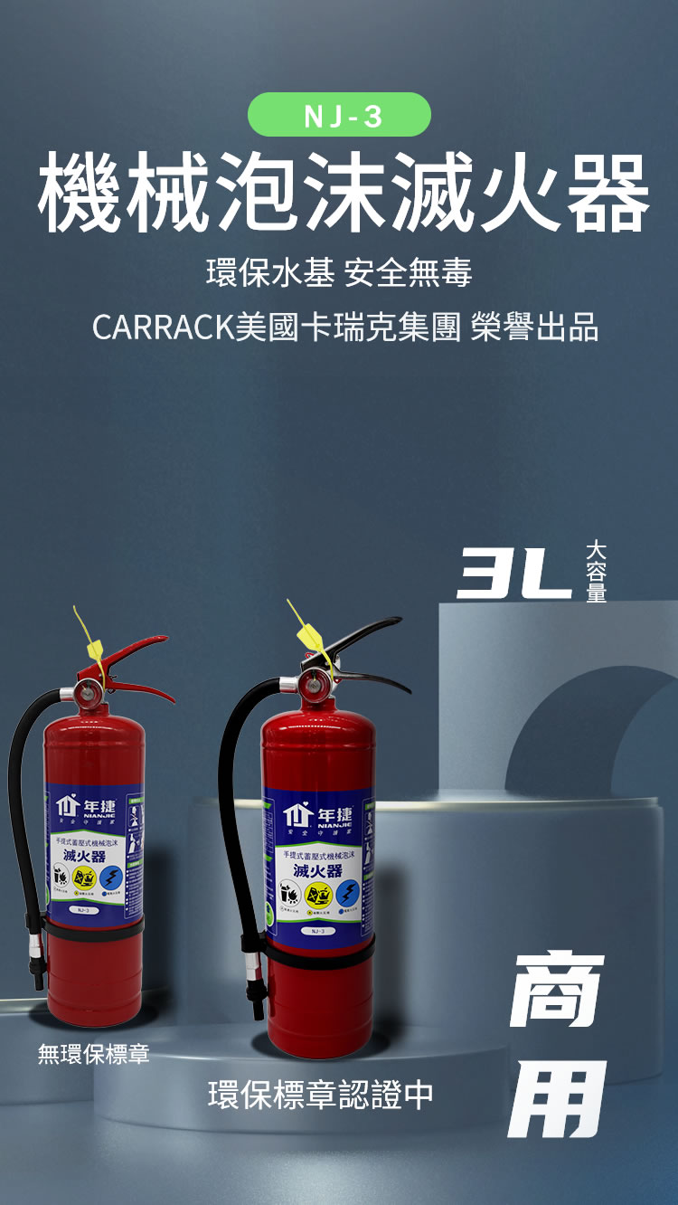 [卡瑞克 CARRACK] 年捷 3L 商用機械泡沫滅火器(臺灣環保認證 商用消防優選)