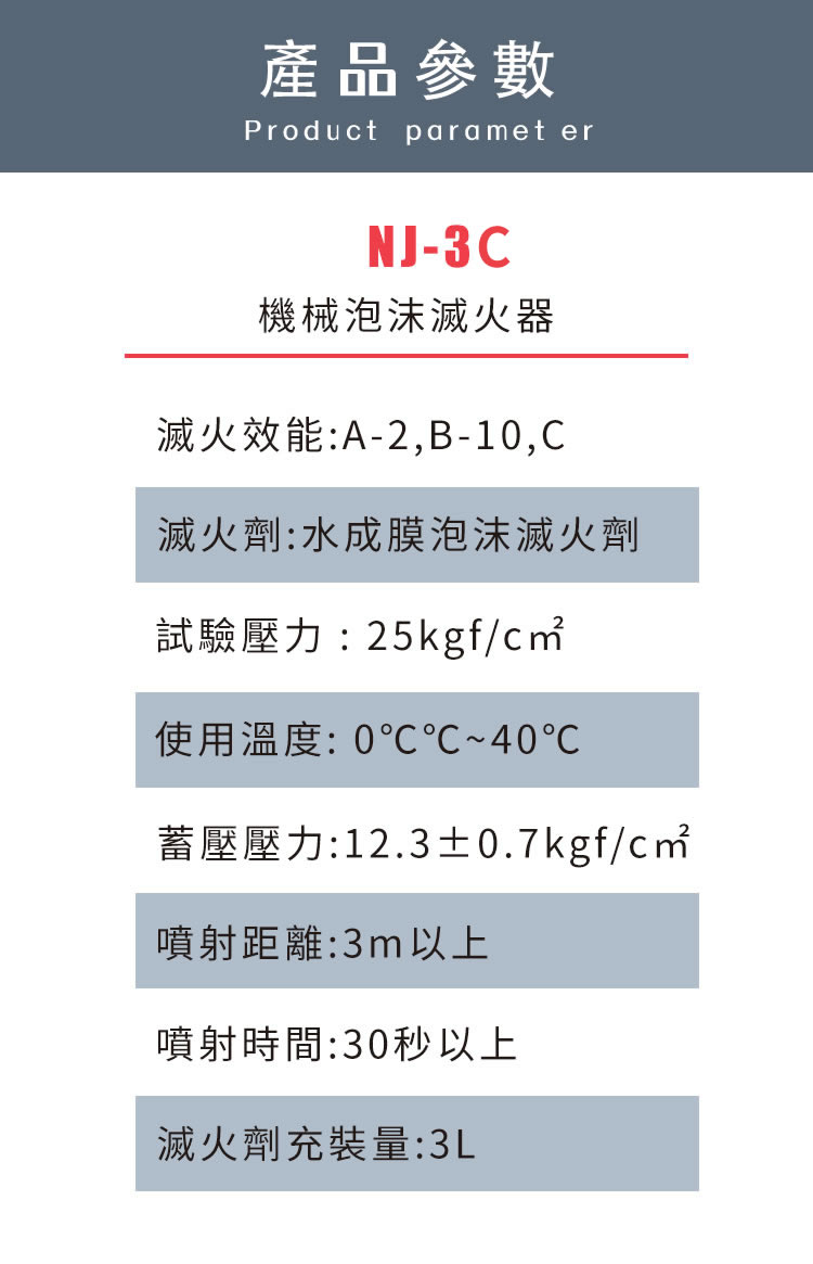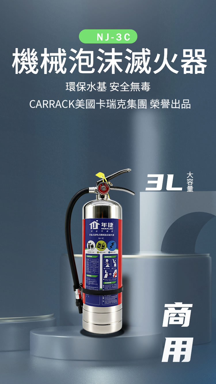 年捷 3L 商用機械泡沫滅火器(不鏽鋼款)